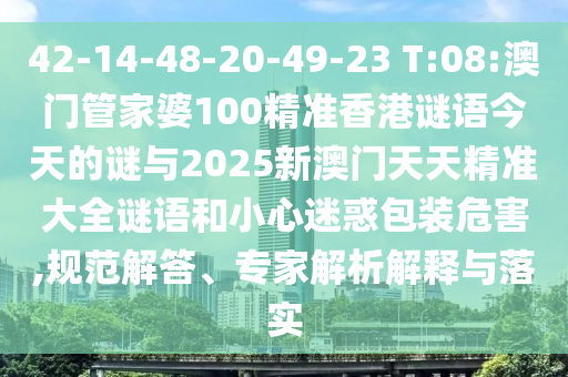 42-14-48-20-49-23 T:08:澳門管家婆100精準香港謎語今天的謎與2025新澳門天天精準大全謎語和小心迷惑包裝危害,規(guī)范解答、專家解析解釋與落實