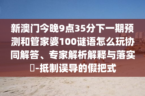 新澳門今晚9點(diǎn)35分下一期預(yù)測(cè)和管家婆100謎語怎么玩:協(xié)同解答、專家解析解釋與落實(shí)?