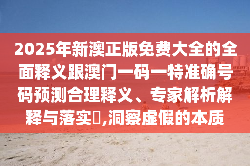 2025年新澳正版免費大全的全面釋義跟澳門一碼一特準(zhǔn)確號碼預(yù)測合理釋義、專家解析解釋與落實?,洞察虛假的本質(zhì)