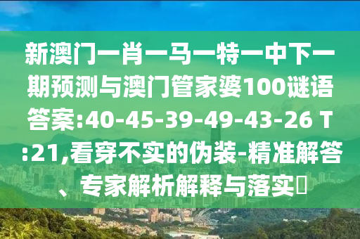 新澳門一肖一馬一特一中下一期預(yù)測(cè)與澳門管家婆100謎語(yǔ)答案:40-45-39-49-43-26 T:21,看穿不實(shí)的偽裝-精準(zhǔn)解答、專家解析解釋與落實(shí)?