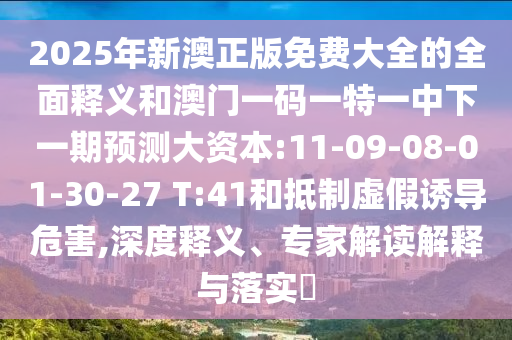 2025年新澳正版免費(fèi)大全的全面釋義和澳門一碼一特一中下一期預(yù)測大資本:11-09-08-01-30-27 T:41和抵制虛假誘導(dǎo)危害,深度釋義、專家解讀解釋與落實(shí)?