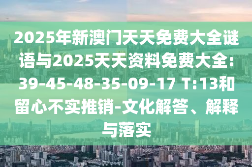 2025年新澳門天天免費大全謎語與2025天天資料免費大全:39-45-48-35-09-17 T:13與留心不實推銷——文化解答、解釋與落實”的解析