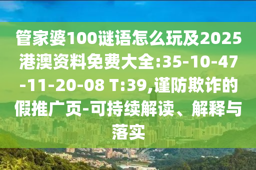 管家婆100謎語怎么玩及2025港澳資料免費大全:35-10-47-11-20-08 T:39,謹防欺詐的假推廣頁-可持續(xù)解讀、解釋與落實