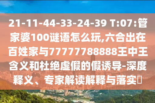 21-11-44-33-24-39 T:07:管家婆100謎語怎么玩,六合出在百姓家與77777788888王中王”的深度釋義、專家解讀與落實(shí),以及警惕虛假宣傳的內(nèi)容