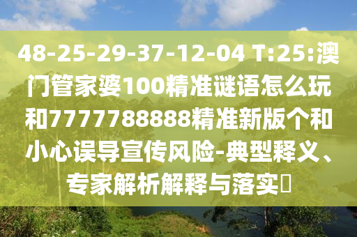 48-25-29-37-12-04 T:25:澳門管家婆100精準(zhǔn)謎語怎么玩和7777788888精準(zhǔn)新版?zhèn)€的典型釋義、專家解析解釋與落實?
