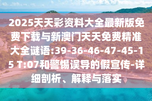 2025天天彩資料大全最新版免費(fèi)下載與新澳門天天免費(fèi)精準(zhǔn)大全謎語:39-36-46-47-45-15 T:07和警惕誤導(dǎo)的假宣傳-詳細(xì)剖析、解釋與落實(shí)