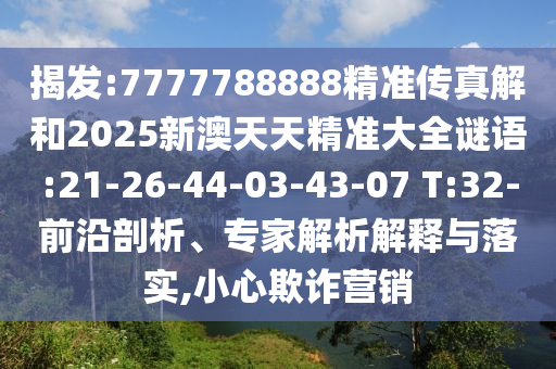 揭發(fā):7777788888精準(zhǔn)傳真解和2025新澳天天精準(zhǔn)大全謎語:21-26-44-03-43-07 T:32-前沿剖析、專家解析解釋與落實,小心欺詐營銷