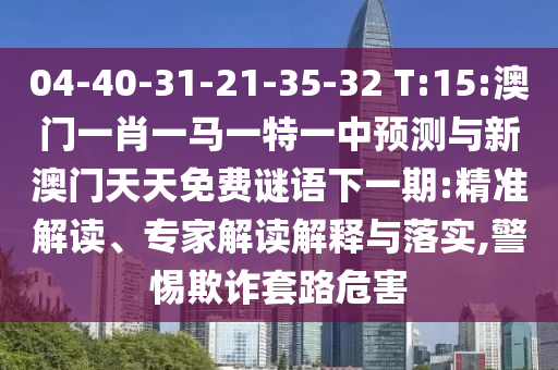 04-40-31-21-35-32 T:15:澳門一肖一馬一特一中預(yù)測與新澳門天天免費謎語下一期:精準(zhǔn)解讀、專家解讀解釋與落實,警惕欺詐套路危害