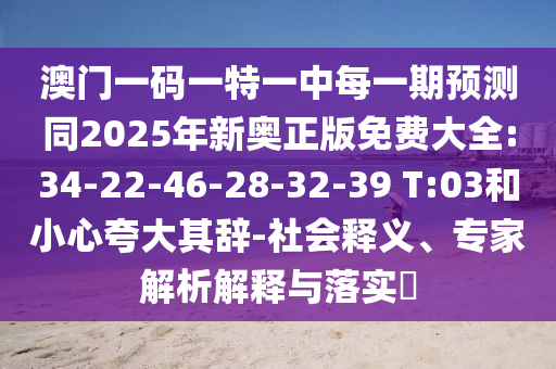 澳門一碼一特一中每一期預(yù)測(cè)同2025年新奧正版免費(fèi)大全:34-22-46-28-32-39 T:03和小心夸大其辭-社會(huì)釋義、專家解析解釋與落實(shí)?