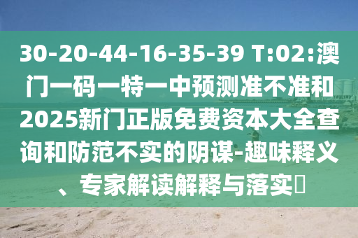 30-20-44-16-35-39 T:02:澳門一碼一特一中預(yù)測準(zhǔn)不準(zhǔn)和2025新門正版免費資本大全查詢和防范不實的陰謀-趣味釋義、專家解讀解釋與落實?
