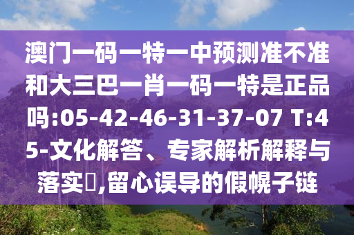 澳門(mén)一碼一特一中預(yù)測(cè)準(zhǔn)不準(zhǔn)和大三巴一肖一碼一特是正品嗎:05-42-46-31-37-07 T:45-文化解答、專(zhuān)家解析解釋與落實(shí)?,留心誤導(dǎo)的假幌子鏈
