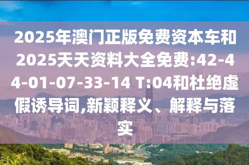 2025年澳門正版免費(fèi)資本車和2025天天資料大全免費(fèi):42-44-01-07-33-14 T:04和杜絕虛假誘導(dǎo)詞,新穎釋義、解釋與落實(shí)