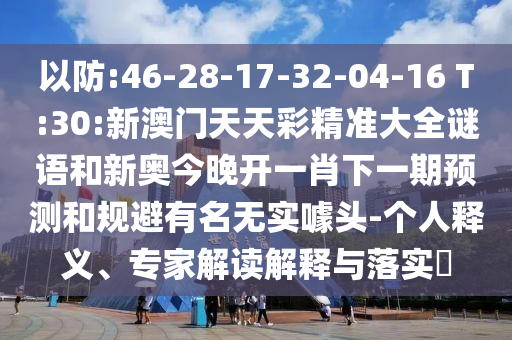 以防:46-28-17-32-04-16 T:30:新澳門(mén)天天彩精準(zhǔn)大全謎語(yǔ)和新奧今晚開(kāi)一肖下一期預(yù)測(cè)和規(guī)避有名無(wú)實(shí)噱頭-個(gè)人釋義、專家解讀解釋與落實(shí)?
