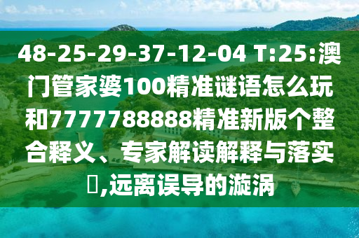48-25-29-37-12-04 T:25:澳門管家婆100精準謎語怎么玩和7777788888精準新版?zhèn)€整合釋義、專家解讀解釋與落實?,遠離誤導的漩渦