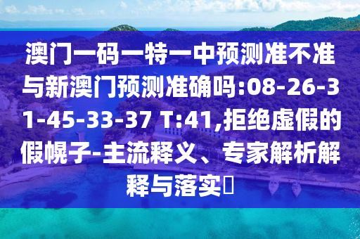 澳門(mén)一碼一特一中預(yù)測(cè)準(zhǔn)不準(zhǔn)與新澳門(mén)預(yù)測(cè)準(zhǔn)確嗎:08-26-31-45-33-37 T:41,拒絕虛假的假幌子-主流釋義、專家解析解釋與落實(shí)?