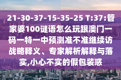21-30-37-15-35-25 T:37:管家婆100謎語怎么玩跟澳門一碼一特一中預(yù)測準(zhǔn)不準(zhǔn)繼續(xù)訪戰(zhàn)略釋義、專家解析解釋與落實(shí),小心不實(shí)的假包裝惑