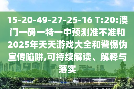 15-20-49-27-25-16 T:20:澳門一碼一特一中預(yù)測準不準和2025年天天游戲大全和警惕偽宣傳陷阱,可持續(xù)解讀、解釋與落實