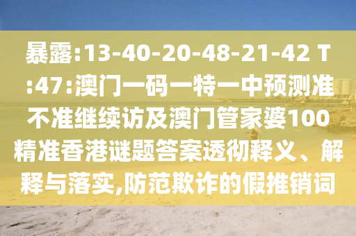 暴露:13-40-20-48-21-42 T:47:澳門一碼一特一中預(yù)測準不準繼續(xù)訪及澳門管家婆100精準香港謎題答案透徹釋義、解釋與落實,防范欺詐的假推銷詞