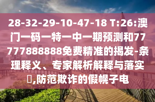 28-32-29-10-47-18 T:26:澳門一碼一特一中一期預(yù)測和77777888888免費(fèi)精準(zhǔn)的揭發(fā)-條理釋義、專家解析解釋與落實(shí)?,防范欺詐的假幌子電