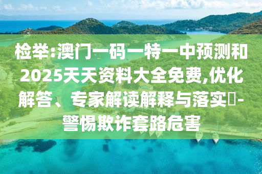 檢舉:澳門一碼一特一中預(yù)測和2025天天資料大全免費(fèi),優(yōu)化解答、專家解讀解釋與落實(shí)?-警惕欺詐套路危害