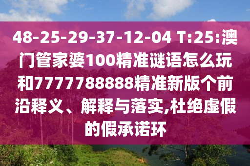 48-25-29-37-12-04 T:25:澳門管家婆100精準謎語怎么玩和7777788888精準新版?zhèn)€前沿釋義、解釋與落實,杜絕虛假的假承諾環(huán)
