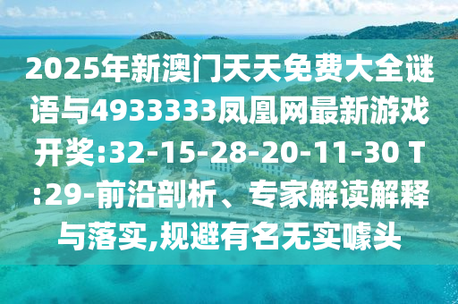 2025年新澳門天天免費(fèi)大全謎語與4933333鳳凰網(wǎng)最新游戲開獎(jiǎng):32-15-28-20-11-30 T:29-前沿剖析、專家解讀解釋與落實(shí),規(guī)避有名無實(shí)噱頭