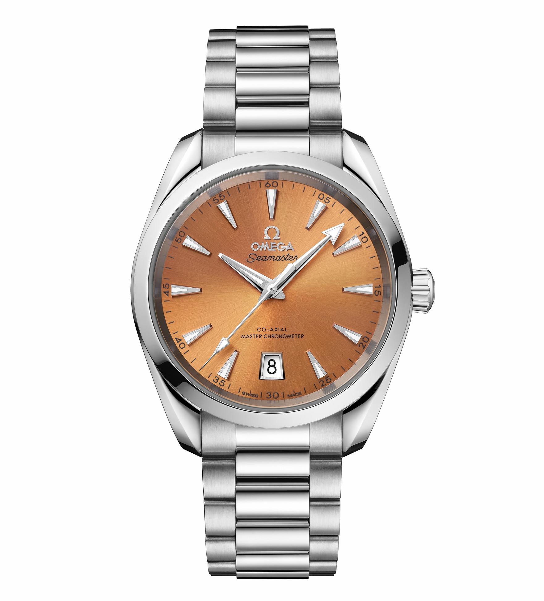 海馬系列 Aqua Terra 150米38毫米至臻天文臺表采用對稱設計,表殼和表冠均以拋光精鋼材質打造,表背采用波紋邊緣設計。6點位設有日歷窗,鍍銠指針和小時刻度均覆有白色 Super-LumiNova 夜光涂層。不銹鋼表鏈采用精美的圓弧形鏈節(jié),經(jīng)拋光和拉絲處理。內(nèi)部搭載歐米茄8800至臻天文臺機芯,通過由瑞士聯(lián)邦計量研究院(METAS)核準的至臻天文臺認證,其精準度、防磁性和整體性能均達到行業(yè)的更高標準。其表盤由黃銅制成,經(jīng)過漆面處理,由中央向四周呈現(xiàn)出太陽射線的打磨效果。各種色彩中,橘黃色古典氣息十足,雅致而沉穩(wěn)。砂巖色樸實無華,屬于低調而休閑的實力派。