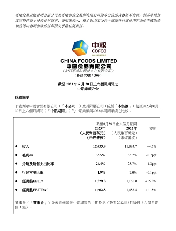 展望未來(lái),中國(guó)食品表示,隨著各類積極政策信號(hào)不斷釋放,經(jīng)濟(jì)持續(xù)回升向好、消費(fèi)復(fù)蘇,以及高質(zhì)量發(fā)展的趨勢(shì)更加顯著,公司對(duì)2023全年收入及利潤(rùn)實(shí)現(xiàn)穩(wěn)健增長(zhǎng)仍然充滿信心,公司將持續(xù)積極推動(dòng)產(chǎn)品結(jié)構(gòu)升級(jí)、業(yè)務(wù)組合優(yōu)化、供應(yīng)鏈整合等重點(diǎn)戰(zhàn)略,促進(jìn)預(yù)期業(yè)績(jī)保持平穩(wěn)發(fā)展。
