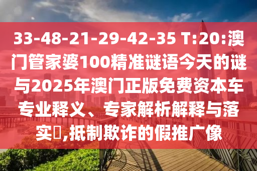 33-48-21-29-42-35 T:20:澳門管家婆100精準(zhǔn)謎語今天的謎與2025年澳門正版免費(fèi)資本車專業(yè)釋義、專家解析解釋與落實(shí)?,抵制欺詐的假推廣像