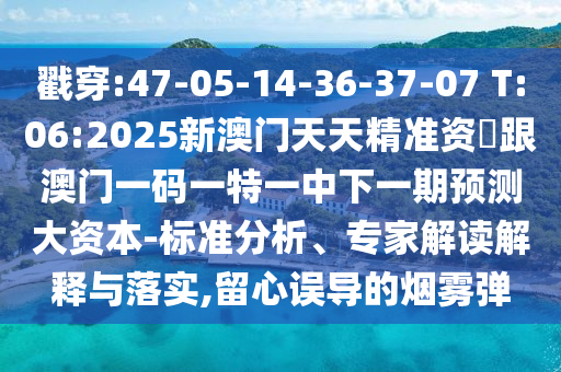 戳穿:47-05-14-36-37-07 T:06:2025新澳門天天精準(zhǔn)資枓跟澳門一碼一特一中下一期預(yù)測大資本-標(biāo)準(zhǔn)分析、專家解讀解釋與落實(shí),留心誤導(dǎo)的煙霧彈