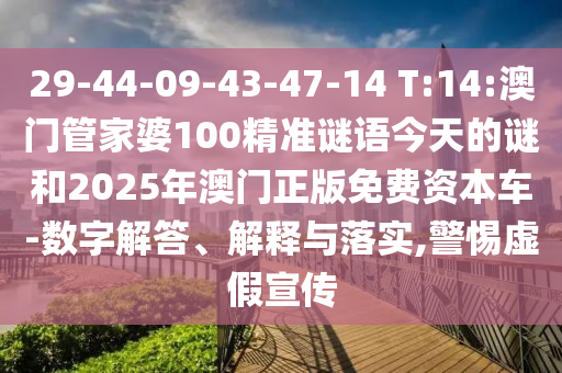 29-44-09-43-47-14 T:14:澳門管家婆100精準(zhǔn)謎語今天的謎和2025年澳門正版免費(fèi)資本車-數(shù)字解答、解釋與落實,警惕虛假宣傳