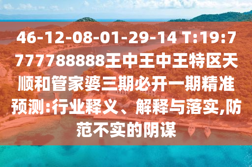 46-12-08-01-29-14 T:19:7777788888王中王中王特區(qū)天順和管家婆三期必開一期精準(zhǔn)預(yù)測:行業(yè)釋義、解釋與落實,防范不實的陰謀