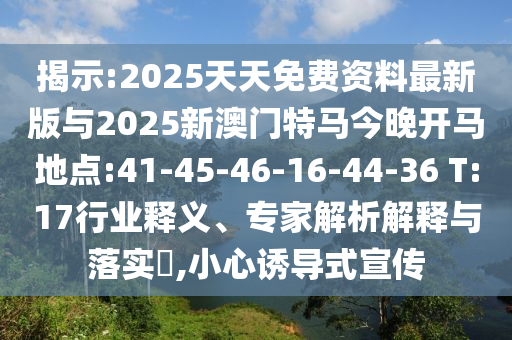 關(guān)于揭示“2025天天免費(fèi)資料最新版”與“2025新澳門(mén)特馬今晚開(kāi)馬地點(diǎn):41-45-46-16-44-36 T:17”的誘導(dǎo)式宣傳,行業(yè)釋義、專(zhuān)家解析解釋與落實(shí)的全面解讀