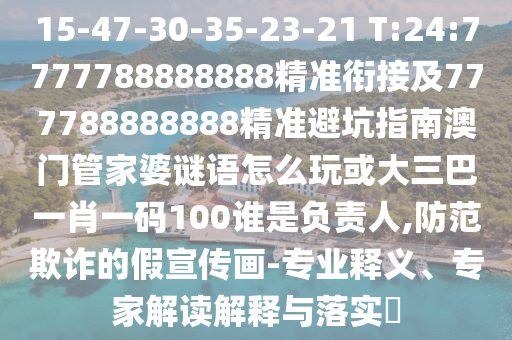15-47-30-35-23-21 T:24:7777788888888精準(zhǔn)銜接及777788888888精準(zhǔn)避坑指南澳門管家婆謎語(yǔ)怎么玩或大三巴一肖一碼100誰(shuí)是負(fù)責(zé)人,防范欺詐的假宣傳畫-專業(yè)釋義、專家解讀解釋與落實(shí)?