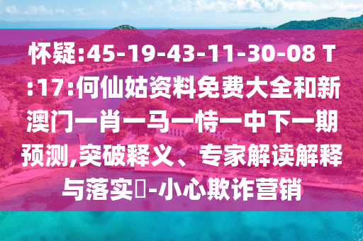 懷疑:45-19-43-11-30-08 T:17:何仙姑資料免費(fèi)大全和新澳門一肖一馬一恃一中下一期預(yù)測”的突破釋義、專家解讀解釋與落實(shí)及警惕欺詐營銷的解析