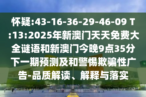 懷疑:43-16-36-29-46-09 T:13:2025年新澳門天天免費(fèi)大全謎語(yǔ)和新澳門今晚9點(diǎn)35分下一期預(yù)測(cè)及和警惕欺騙性廣告-品質(zhì)解讀、解釋與落實(shí)