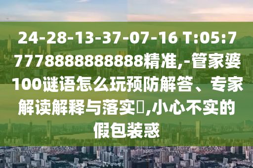 針對關(guān)鍵詞“謹(jǐn)防:24-28-13-37-07-16 T:05:777788888888精準(zhǔn),-管家婆100謎語怎么玩”,我們可以從以下幾個方面進(jìn)行解讀: