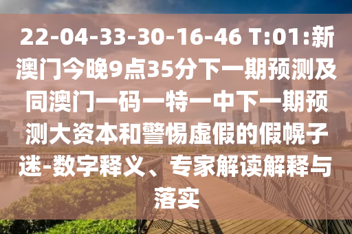 22-04-33-30-16-46 T:01:新澳門今晚9點35分下一期預(yù)測及同澳門一碼一特一中下一期預(yù)測大資本:數(shù)字釋義、專家解讀解釋與落實