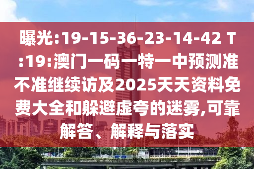 19-15-36-23-14-42 T:19:澳門一碼一特一中預(yù)測準不準繼續(xù)訪及2025天天資料免費大全:可靠解答、解釋與落實