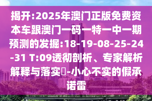 揭開:2025年澳門正版免費(fèi)資本車跟澳門一碼一特一中一期預(yù)測(cè)的發(fā)掘:18-19-08-25-24-31 T:09透徹剖析、專家解析解釋與落實(shí)?-小心不實(shí)的假承諾雷