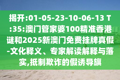 揭開:01-05-23-10-06-13 T:35:澳門管家婆100精準(zhǔn)香港謎和2025新澳門免費(fèi)掛牌真假-文化釋義、專家解讀解釋與落實(shí),抵制欺詐的假誘導(dǎo)旗