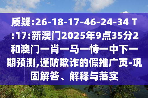 質(zhì)疑:26-18-17-46-24-34 T:17:新澳門2025年9點35分2和澳門一肖一馬一恃一中下一期預(yù)測,謹(jǐn)防欺詐的假推廣頁-鞏固解答、解釋與落實