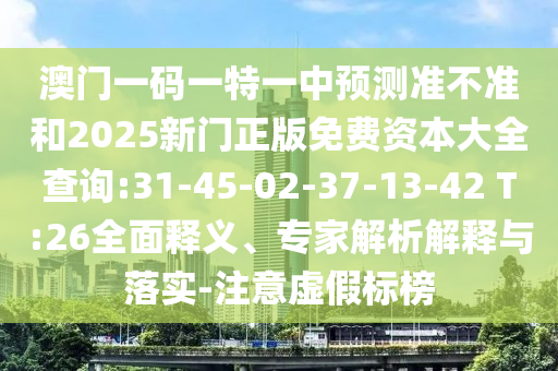 澳門一碼一特一中預測準不準和2025新門正版免費資本大全查詢:31-45-02-37-13-42 T:26全面釋義、專家解析解釋與落實-注意虛假標榜